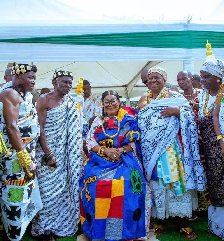 Asukawkaw, Oti Region — First Lady, Mrs. Lordina Mahama, has been enstooled as Nana Oseadeeyo Odenwa II by the Paramount Chief of the Akroso Asukawkaw Traditional Area, Nana Odam Gyamfi III, in recognition of her philanthropic contributions to healthcare delivery in the community.