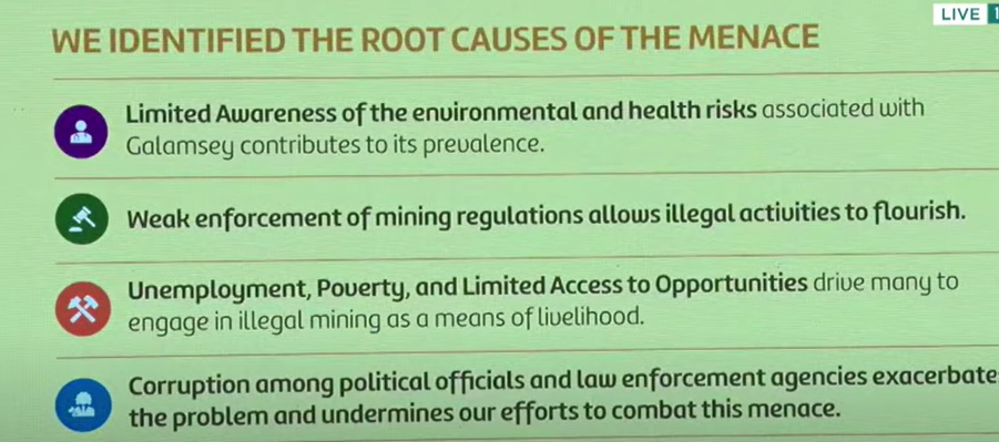 The Minister highlighted that weak enforcement of mining regulations has allowed illegal operators to thrive. High levels of unemployment, poverty, and limited access to opportunities have pushed many Ghanaians into illegal mining as a source of livelihood. Furthermore, corruption among political actors and law enforcement agencies undermines efforts to combat the menace, with some officials complicit in the illegal activities.