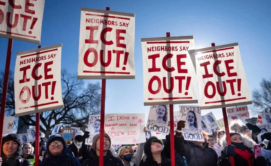 Aday of protest, with Minnesotans urged to stay away from work, school and stores, was kicked off by community leaders, faith leaders and labor unions today, in protest against the Immigration and Customs Enforcement (ICE) surge in the state.