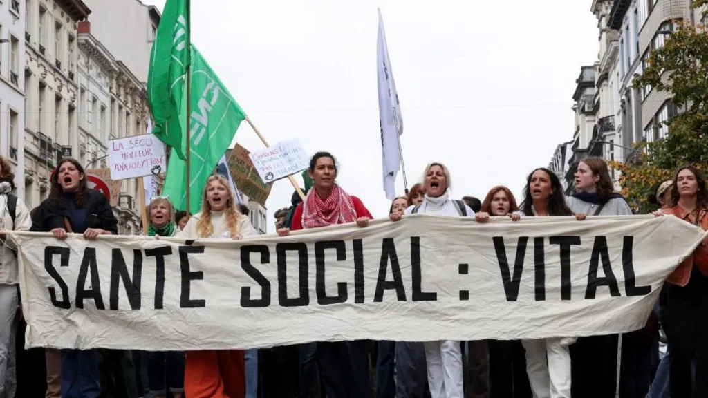 Belgium’s three big unions are protesting over pensions and other measures by Prime Minister Bart de Wever’s centre-right government aimed at cutting the budget deficit.