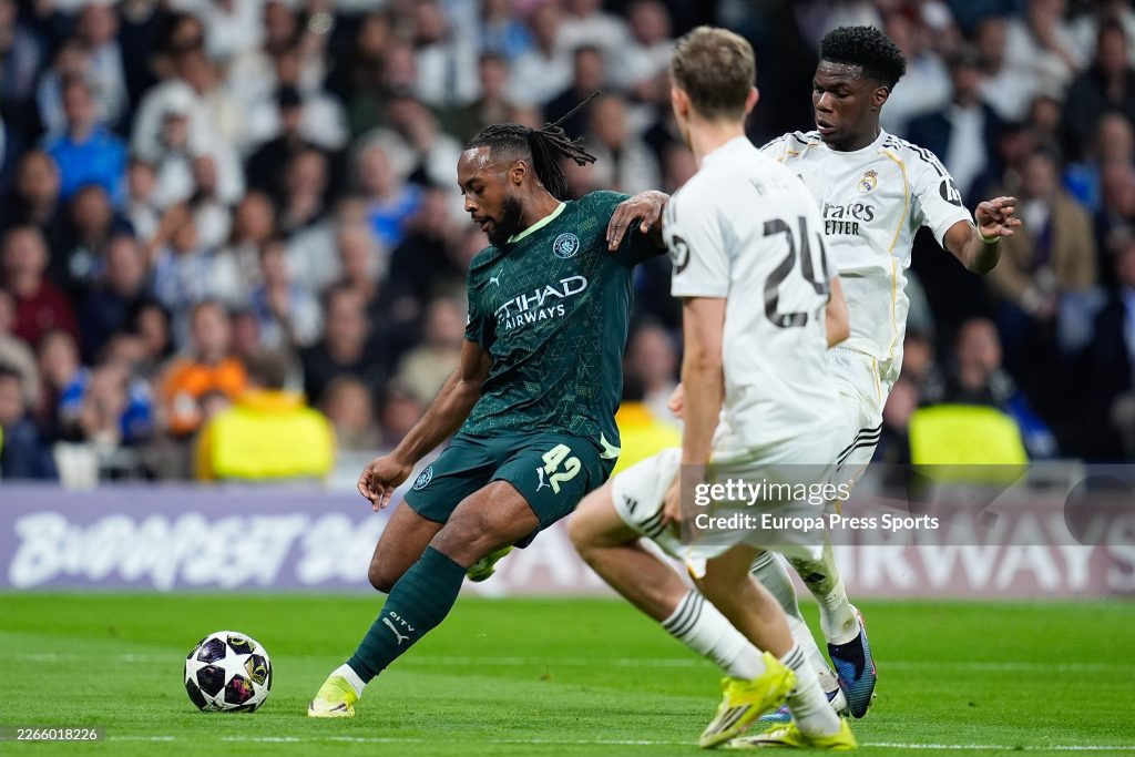 Antoine Semenyo of Manchester City shoots during the UEFA Champions League 2025/26 Round of 16 First Leg match between Real Madrid F.C. and Manchester City (Photo By Dennis Agyeman/Europa Press via Getty Images